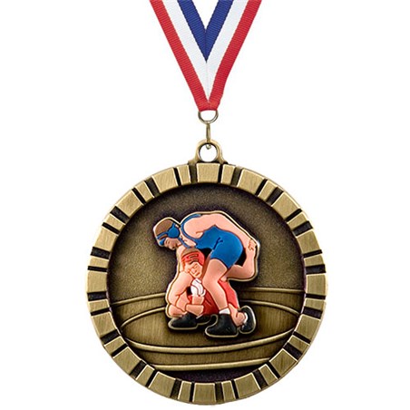 2″ Decagon Painted Wrestling Medal with your choice of ribbon color below.