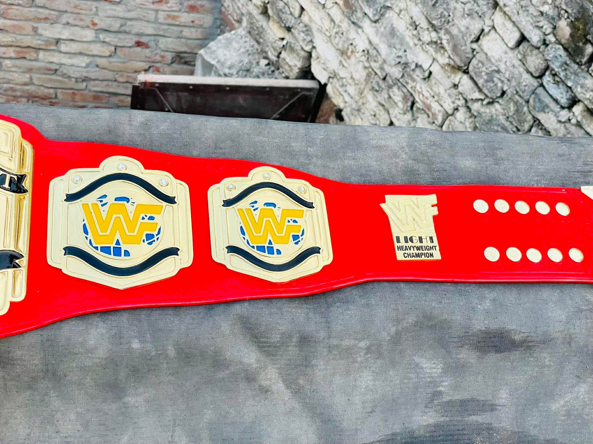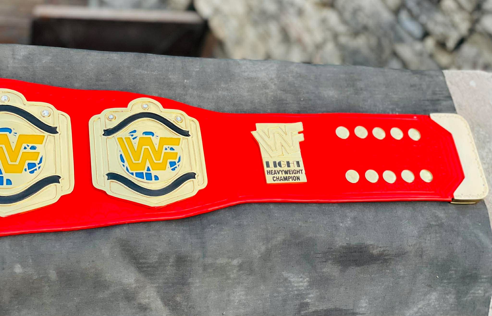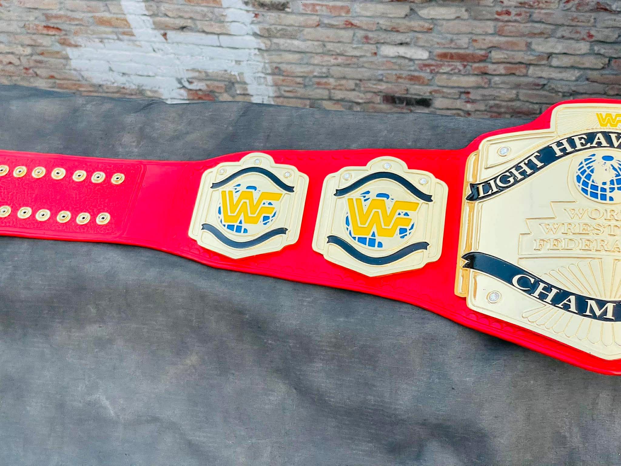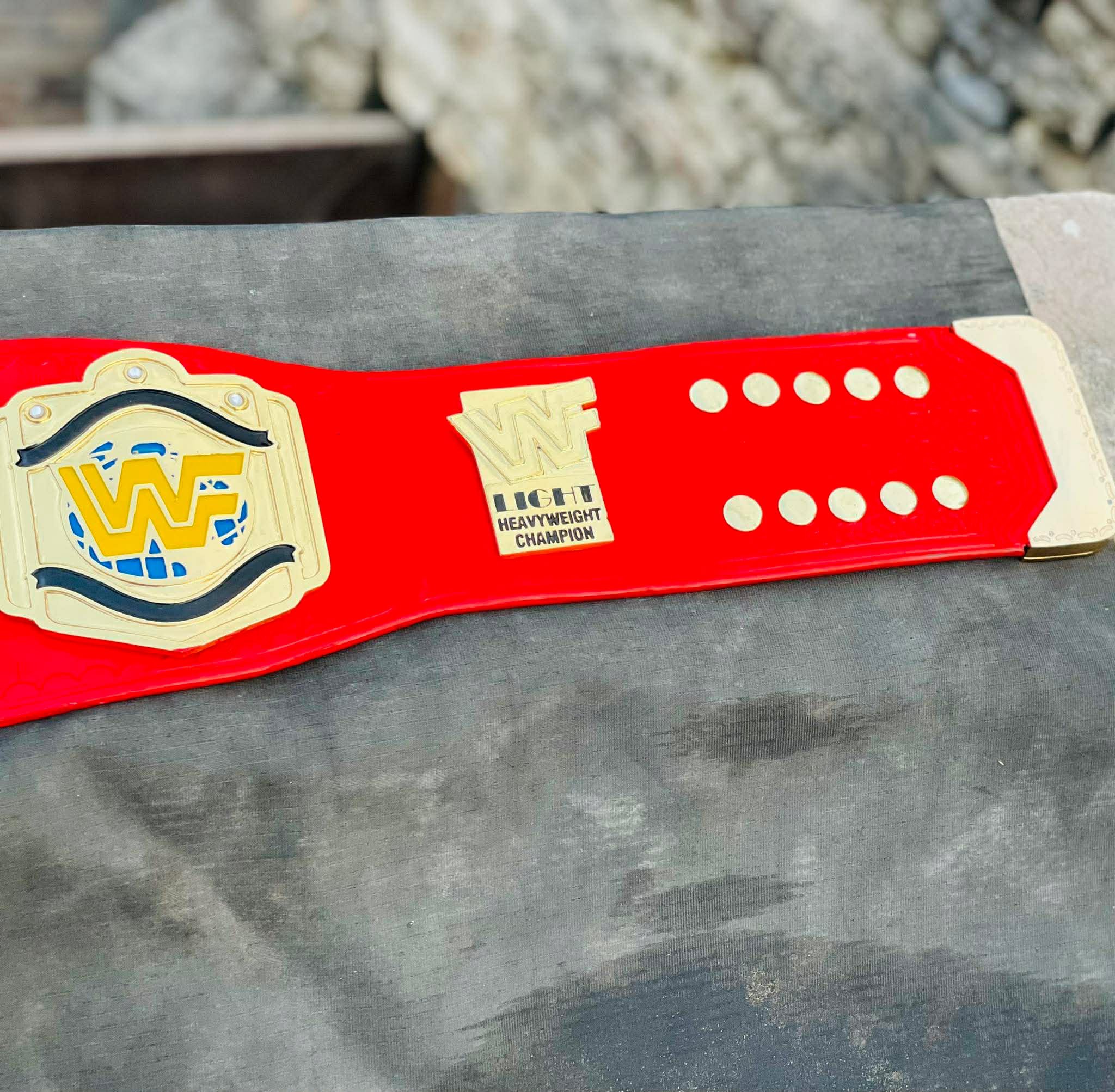 This is the classic WWF Light Heavyweight Championship, most famously associated with the high-flying “Attitude Era” and stars like Taka Michinoku and Duane Gill. The red strap version is the most iconic look for this title, making it a standout piece in any collection.